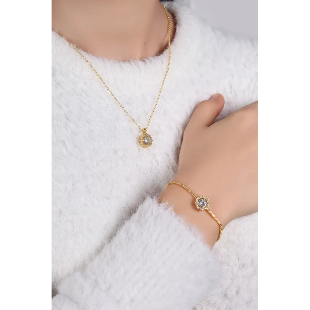 Set obuhvata elegantan, precizan sat i usklađene komade nakita (ogrlicu/narukvicu), oboje izvedeno u bogatom tonu. Detaljno obrađene površine i klasičan dizajn daju mu upečatljivu, prestižnu notu, dok kvalitetna izrada garantuje dugotrajan sjaj i besprekornu udobnost.