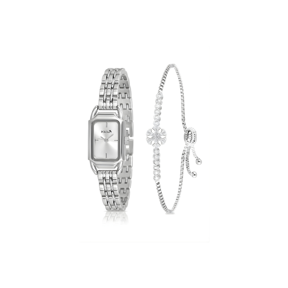 Ulepšajte svaki trenutak ovim prefinjenim setom koji kombinuje eleganciju, stil i funkcionalnost. Set sadrži moderan ručni sat i usklađenu narukvicu, dizajnirane tako da se savršeno dopunjuju i daju dašak luksuza svakoj odevnoj kombinaciji. Ručni sat odlikuje se čistim linijama, kvalitetnom izradom i sofisticiranim detaljima na brojčaniku, dok narukvica svojim sjajem i nežnim dizajnom dodaje dodatnu notu glamura. Zajedno čine savršen spoj za poklon, posebnu priliku ili svakodnevno nošenje.