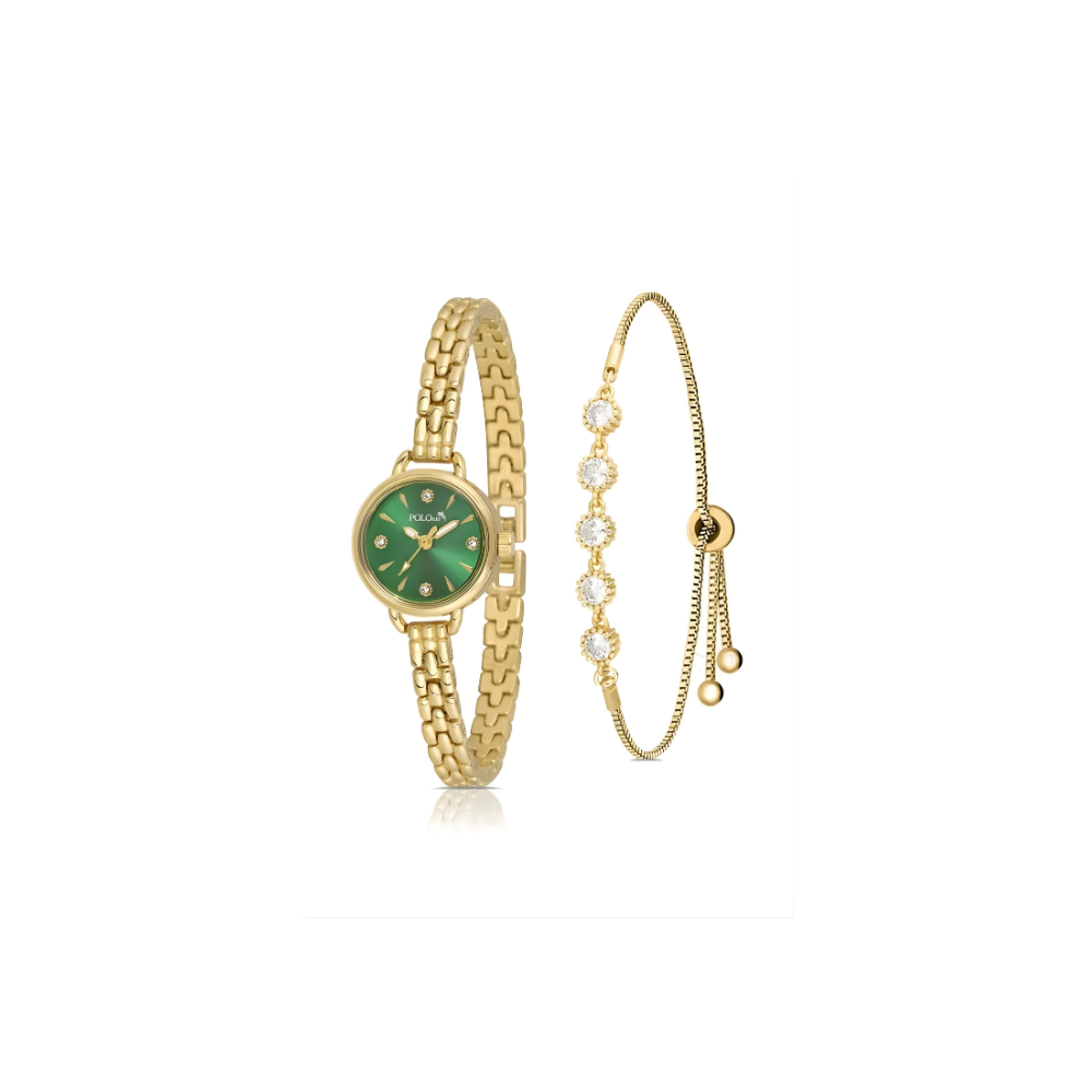 Ulepšajte svaki trenutak ovim prefinjenim setom koji kombinuje eleganciju, stil i funkcionalnost. Set sadrži moderan ručni sat i usklađenu narukvicu, dizajnirane tako da se savršeno dopunjuju i daju dašak luksuza svakoj odevnoj kombinaciji. Ručni sat odlikuje se čistim linijama, kvalitetnom izradom i sofisticiranim detaljima na brojčaniku, dok narukvica svojim sjajem i nežnim dizajnom dodaje dodatnu notu glamura. Zajedno čine savršen spoj za poklon, posebnu priliku ili svakodnevno nošenje.