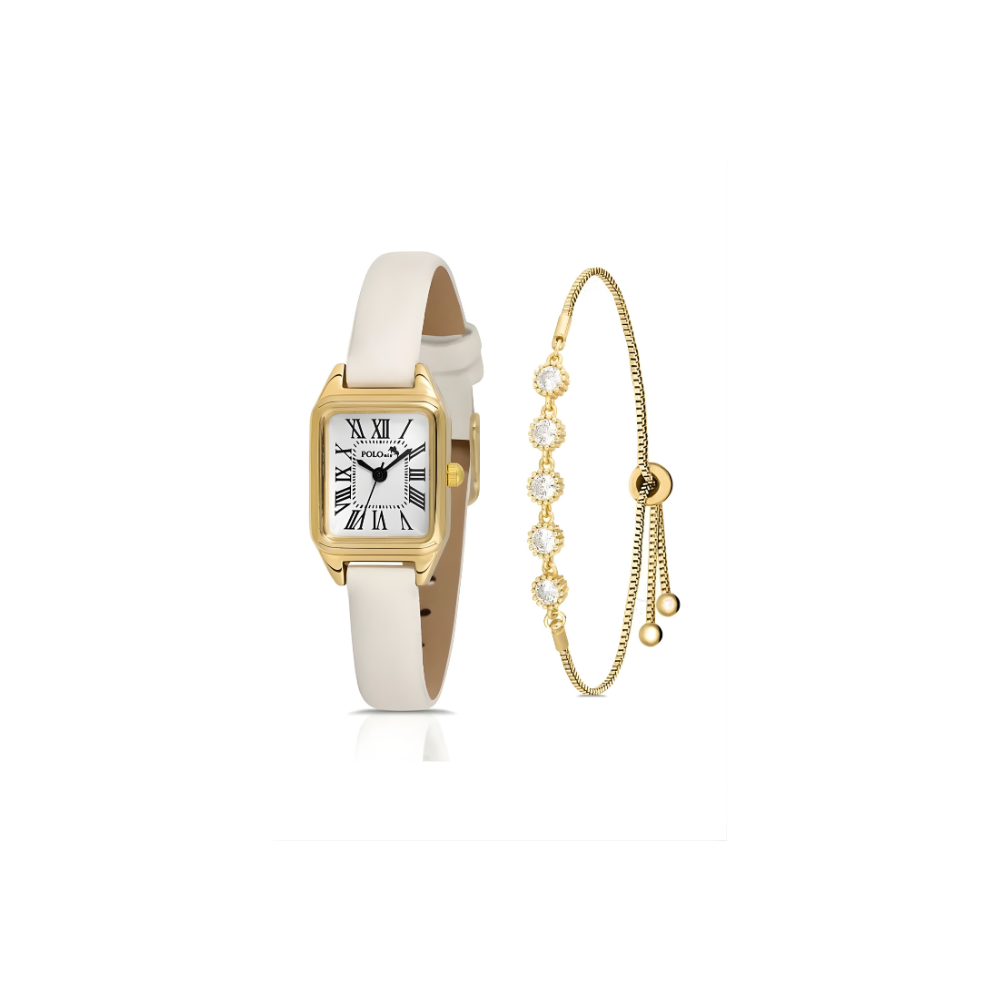 Ulepšajte svaki trenutak ovim prefinjenim setom koji kombinuje eleganciju, stil i funkcionalnost. Set sadrži moderan ručni sat i usklađenu narukvicu, dizajnirane tako da se savršeno dopunjuju i daju dašak luksuza svakoj odevnoj kombinaciji. Ručni sat odlikuje se čistim linijama, kvalitetnom izradom i sofisticiranim detaljima na brojčaniku, dok narukvica svojim sjajem i nežnim dizajnom dodaje dodatnu notu glamura. Zajedno čine savršen spoj za poklon, posebnu priliku ili svakodnevno nošenje.