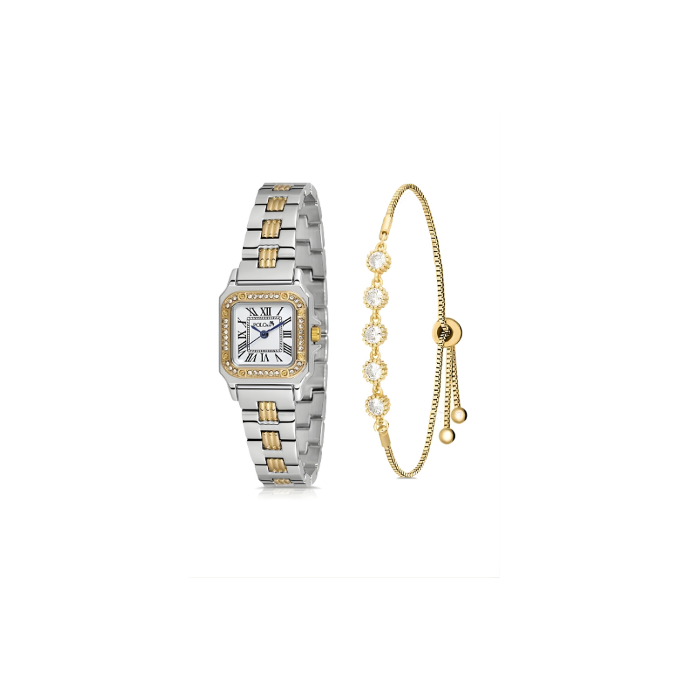 Ulepšajte svaki trenutak ovim prefinjenim setom koji kombinuje eleganciju, stil i funkcionalnost. Set sadrži moderan ručni sat i usklađenu narukvicu, dizajnirane tako da se savršeno dopunjuju i daju dašak luksuza svakoj odevnoj kombinaciji. Ručni sat odlikuje se čistim linijama, kvalitetnom izradom i sofisticiranim detaljima na brojčaniku, dok narukvica svojim sjajem i nežnim dizajnom dodaje dodatnu notu glamura. Zajedno čine savršen spoj za poklon, posebnu priliku ili svakodnevno nošenje.